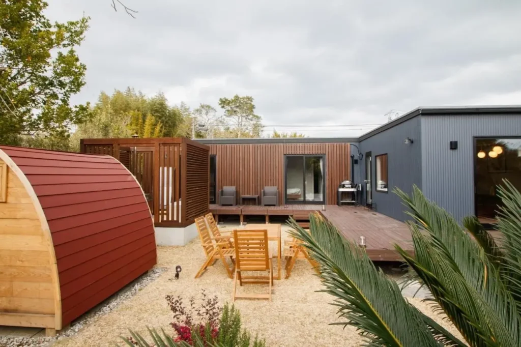 每棟別墅均配有寬敞的專屬庭院(露台),並在庭院內設有正宗桑拿。每棟別墅的最大入住人數分別為8人、8人和5人,共可容納21人。此外,每個院內還設有最多可停放兩輛車的停車空間。