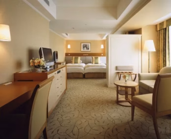 如果您與家人一同入住,我們推薦您入住最多可容納四人的豪華家庭房。寬敞的54平方公尺客房配有獨立衛浴和兩個盥洗台,方便您為寶寶準備就寢。此外,飯店還提供嬰兒浴盆、嬰兒床和嬰兒奶瓶清洗機的租賃服務。