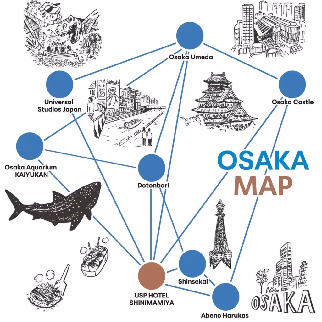 「USP HOTEL SHINIMAMIYA」位於大阪新今宮,距離新今宮站僅需步行2分鐘,地理位置優越,前往梅田、難波等熱門景點只需短時間電車車程。飯店周邊餐廳林立、購物便利,無論是觀光還是購物,都近在咫尺。此區擁有 JR 與南海本線雙線路,從關西機場前來交通非常方便。近年來,星野集團等高端飯店陸續進駐,使這裡成為備受關注的旅遊新熱點。飯店預計於 2025 年 4 月開幕,正值大阪世博會熱烈展開之際,誠摯邀請您來體驗不同凡響的住宿之旅。
