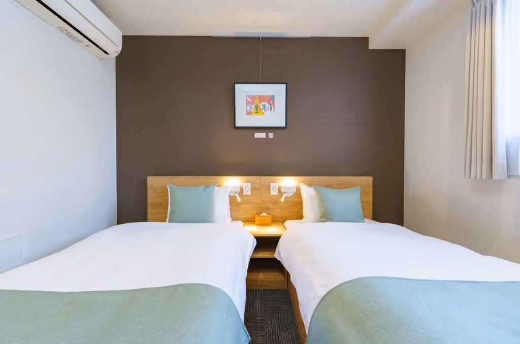 飯店提供兩種房型選擇──單人房與雙床房,皆配備完善隔音設施,確保寧靜舒適的休息空間。全室採用設計師精心規劃的沈穩色系,營造出雅緻且放鬆的氛圍,是紓解旅途疲憊的理想空間。