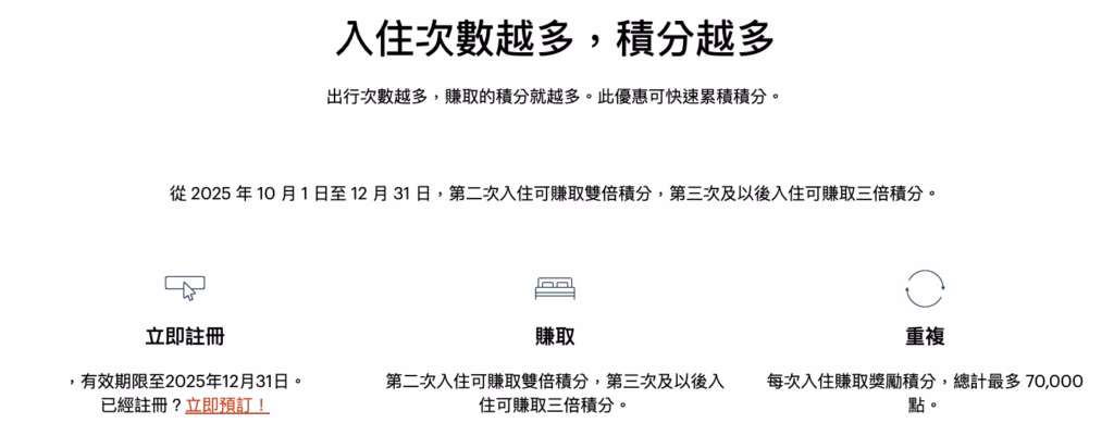 - 本次活動:第 2 住再加基礎 1 倍;第 3 住起再加基礎 2 倍。